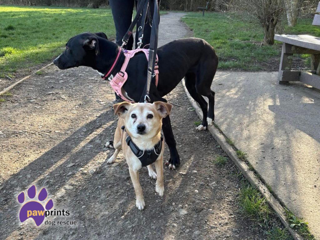 Rupert can be a little bit aloof when you first meet him, but he is definitely won over by food and once he knows you enjoys a fuss. He could live with children over 14, we have only seen friendly behaviours around people but with him being older we think he would rather live with older kids. Whilst he enjoys being out and about in busy places, he also likes a quiet area to sleep when he needs to. He could have younger visitors. He is good being handled and picked up for things like the vets, being put in the car, having a harness on.